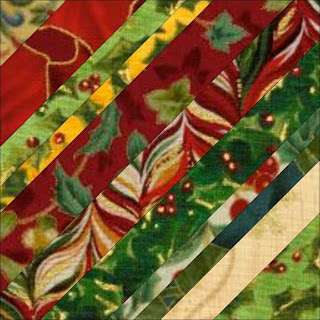 Continue adding strips in this manner, using random widths and colours, until foundation is covered. Trim block to 6-1/2" square. Your blocks will look something like this: